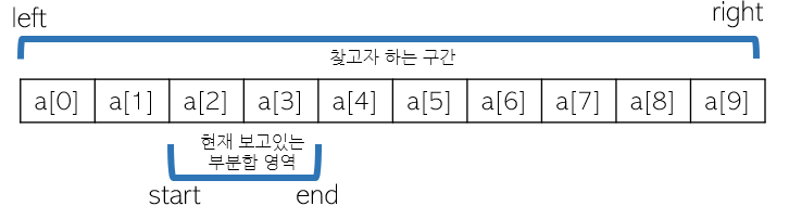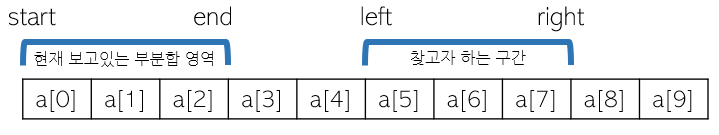 우리는 배열 A의 left 원소부터 right 원소까지의 부분합을 찾는 것이 목표이다.