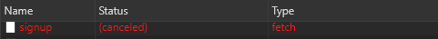 그림과 같은 형태의 form을 만들고 post request를 보내는 작업을 하고있었는데, postman에서는 통신이 잘 되는 것을 확인했지만 크롬에서는 계속해서 response를 받지 못했다. 왜그런가 이유를 살펴보다가 크롬 개발자 도구의 Network탭에서 보니 status가 canceled로 표시되고 있었다.
